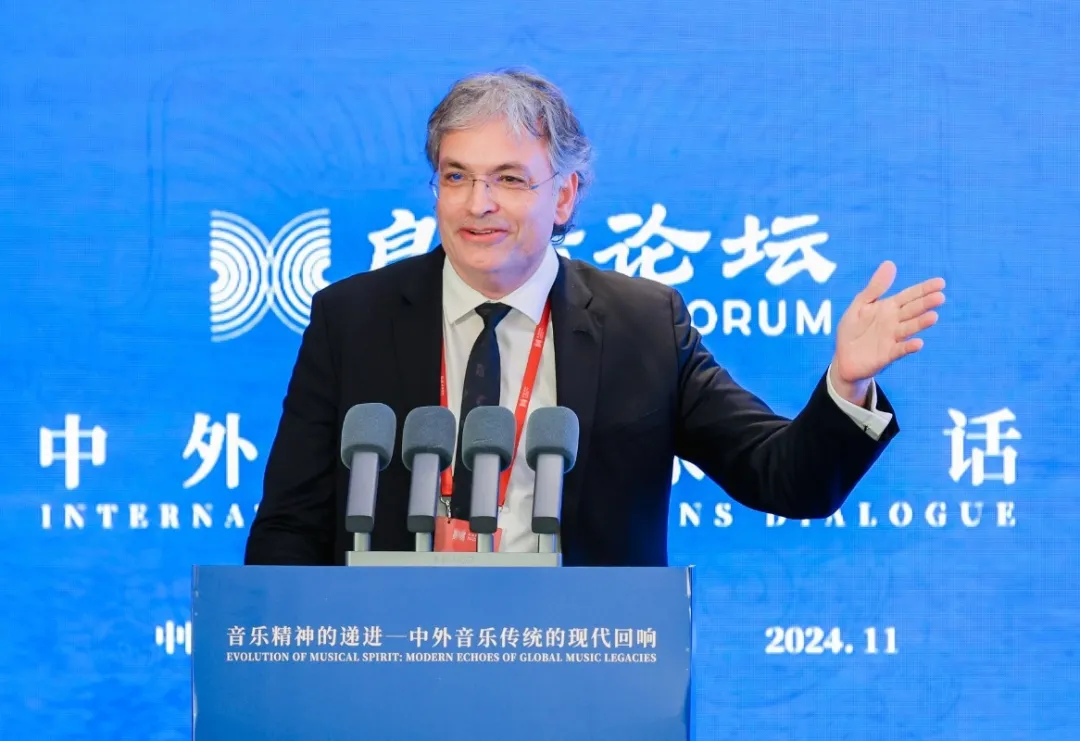 论坛上,中外专家围绕“古代音乐艺术与人类文明发展”和“人工智能时代与艺术未来发展”两个议题,分别展开深入对话,探讨音乐艺术在人类文明发展历程中的重要作用,以及人工智能时代背景下艺术的未来走向。