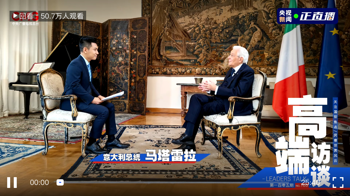 央视新闻:意大利总统马塔雷拉在北京接受总台《高端访谈》独家专访。