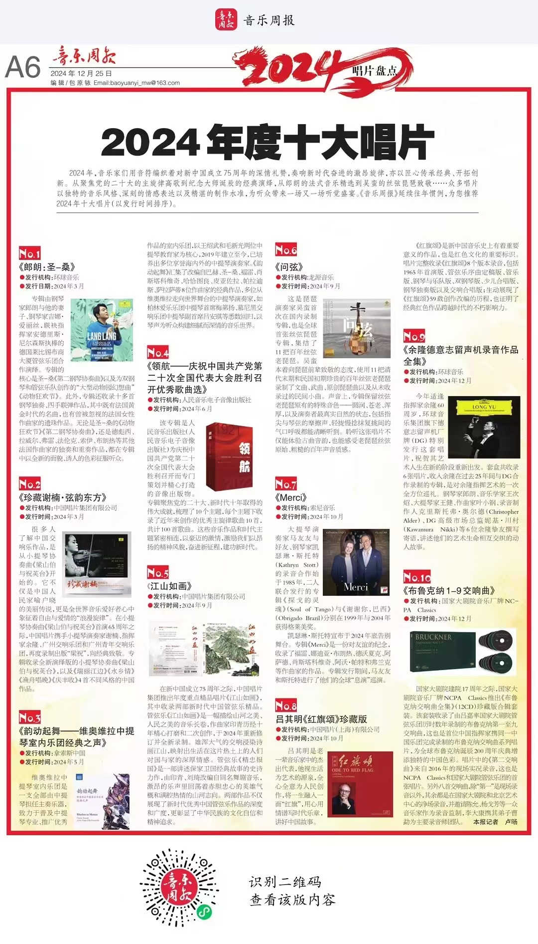 音乐周报:2024年度十大唱片
