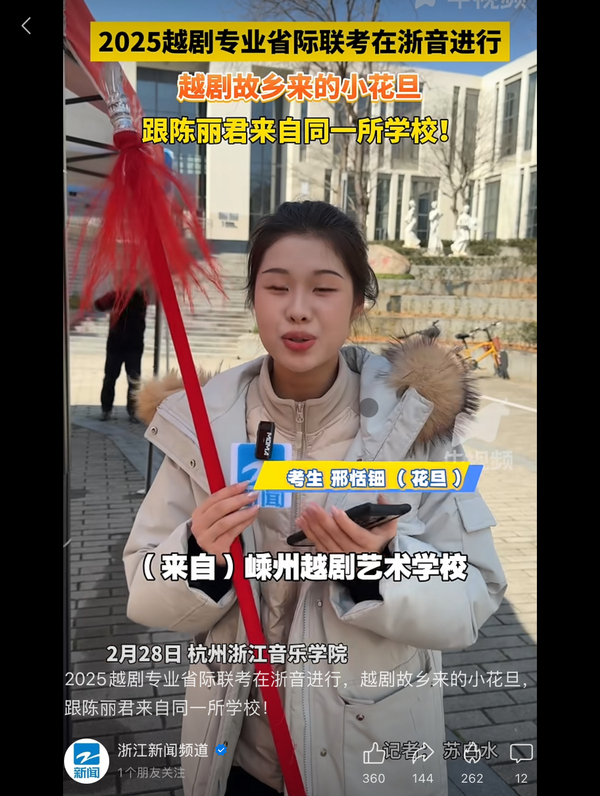 浙江新闻频道:2025越剧专业省际联考在浙音进行,越剧故乡来的小花旦,跟陈丽君来自同一所学校!