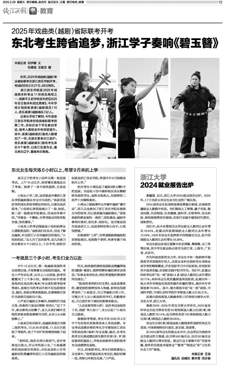 钱江晚报|潮新闻:2025年戏曲类(越剧)省际联考开考 东北考生跨省追梦,浙江学子奏响《碧玉簪》
