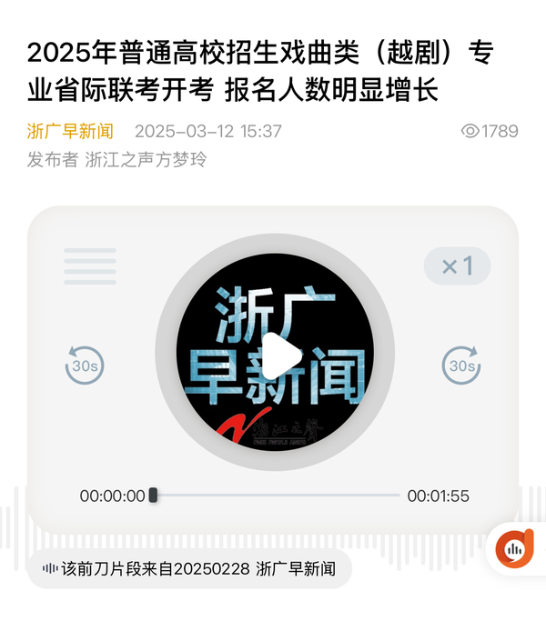 浙江之声|浙广早新闻:2025年普通高校招生戏曲类(越剧)专业省际联考开考 报名人数明显增长