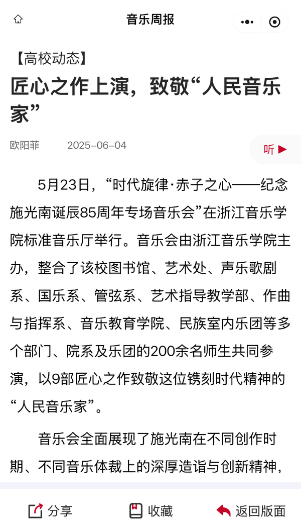 音乐周报:匠心之作上演,致敬“人民音乐家”