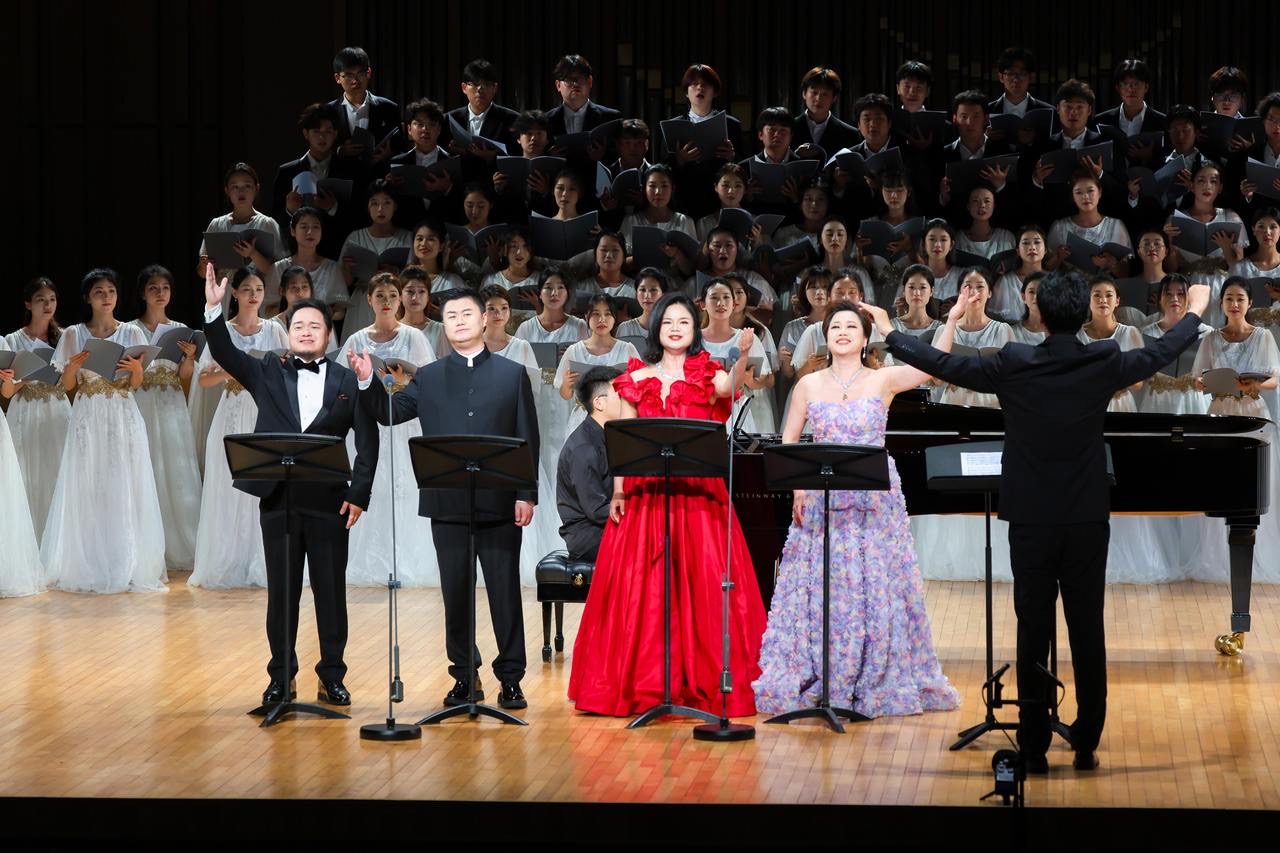 首演的合唱组曲《在祖国大家庭里》之《蓝天上飞过的跑马云》以蒙古族长调元素为核心,刘涛的演唱与浙音合唱学院的多彩和声相互呼应,勾勒出辽阔草原的悠远意境,彰显了施光南先生在少数民族音乐创作领域的深耕。