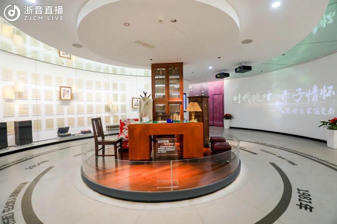 但若要更加深入了解这位“人民音乐家”,不妨走进浙音图书馆内的施光南音乐艺术馆。环形布展的艺术馆,《祝酒歌》《在希望的田野上》《多情的土地》等歌曲的珍贵手稿布满了两面墙壁,一台旧钢琴,一个塞满旧书的书架,铺满展柜的证书奖状……呈现了一段充满传奇色彩的音乐人生。