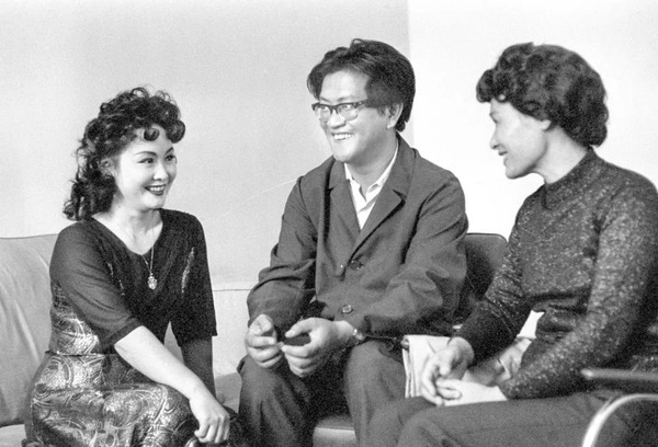 作曲家施光南(中)同歌唱家李谷一(左)、罗天婵在一起(资料照片)。图源 新华社