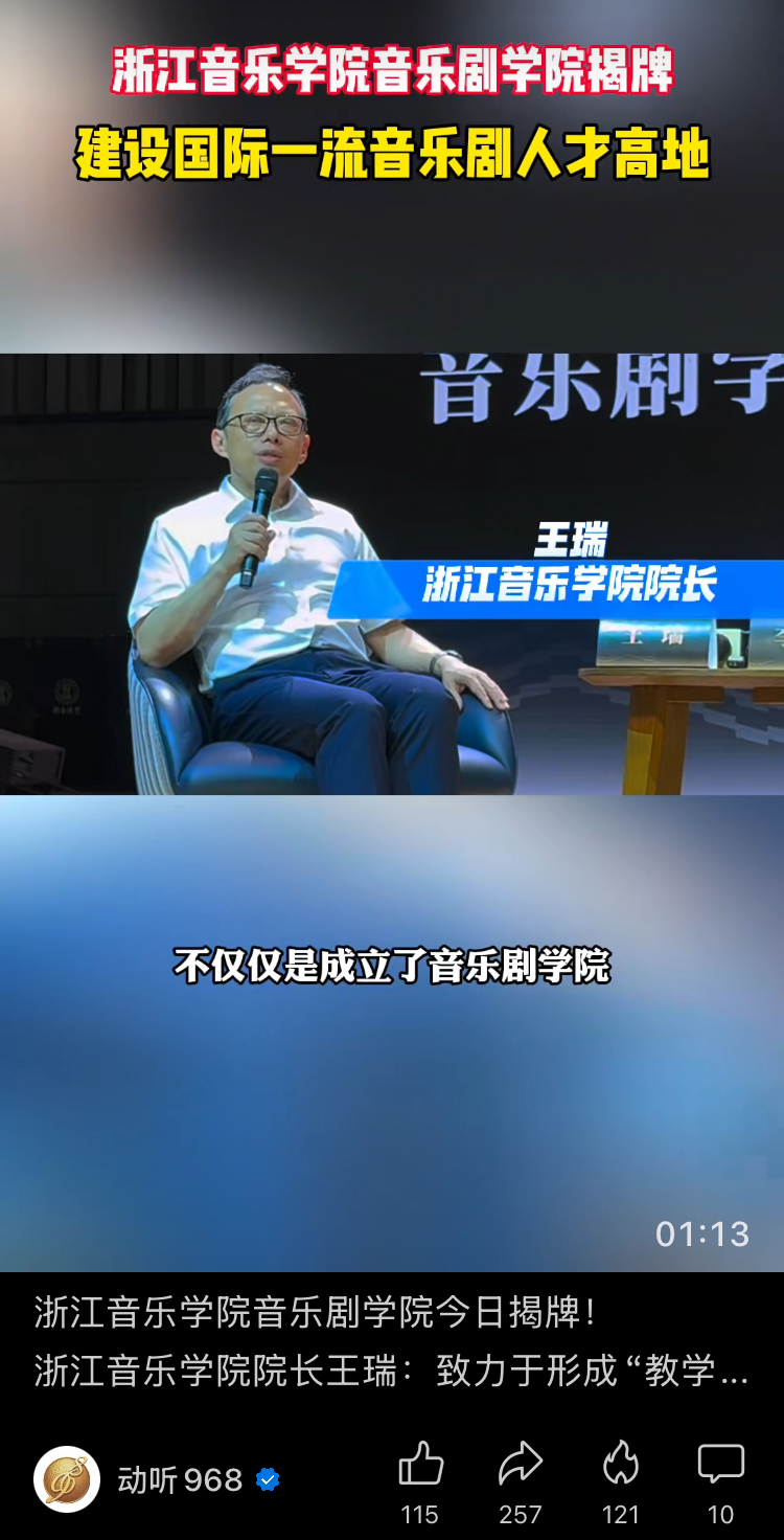 动听968: 浙江音乐学院揭牌全国首个音乐剧学院