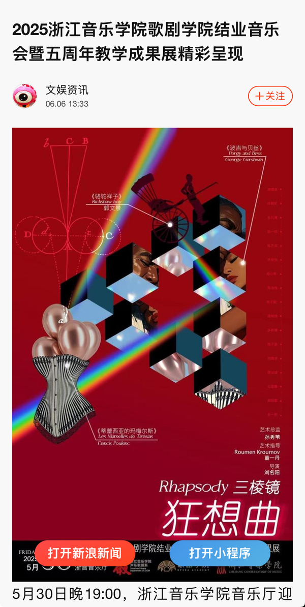 新浪新闻:2025浙江音乐学院歌剧学院结业音乐会暨五周年教学成果展精彩呈现