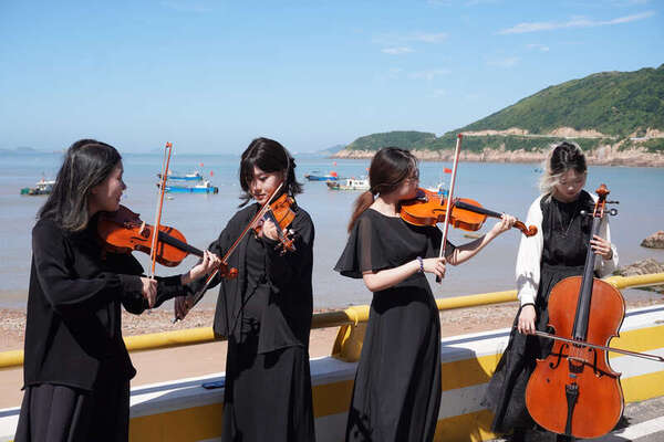 舟山渔村海风撩动着琴弦,浙江音乐学院管弦系的“文艺轻骑兵”队伍,踏浪前行,从嵊泗县青沙村的文化礼堂,到舟山市定海区的广场露天舞台,5天6地的巡演,让《梁山伯与祝英台》的缠绵与《菊花台》的悠扬,传遍海岛10余个村落。渔民们说,以前只在电视上看过的乐器,现在就在眼前!