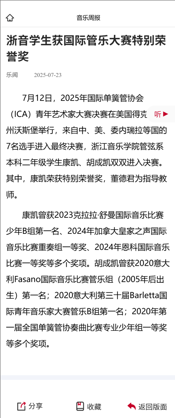 音乐周报:浙音学生获国际管乐大赛特别荣誉奖