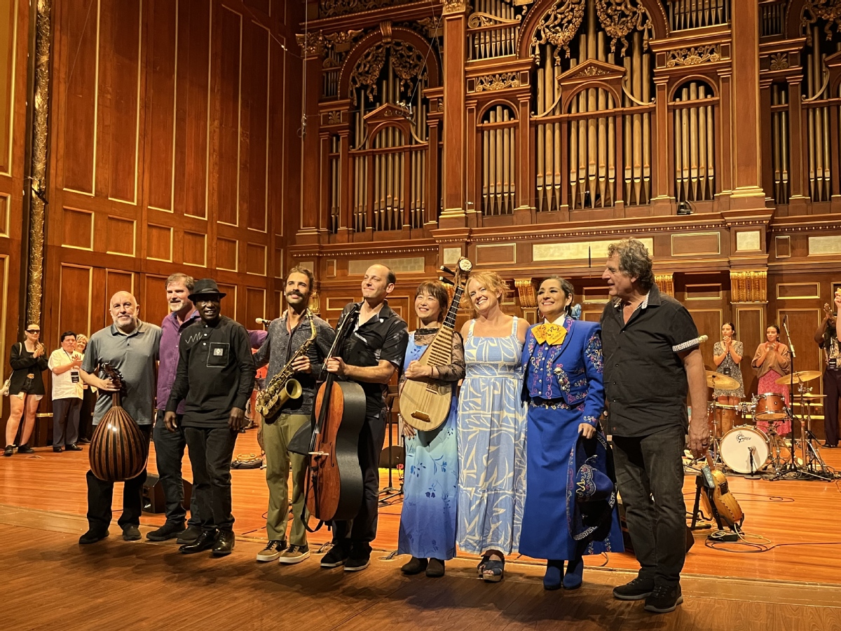 The reception was followed by a concert where Silkroad artists and other Global Musician Workshop faculty showcased the artistry of their virtuosic solos, dynamic collaborations and boundary-pushing music. The concert reached a peak when Wu Man — the world's premier pipa virtuoso and co-director of Global Musician Workshop Hangzhou — together with the rest of the crew, played Tune of Four Seasons, a folk tune from Qinghai province.