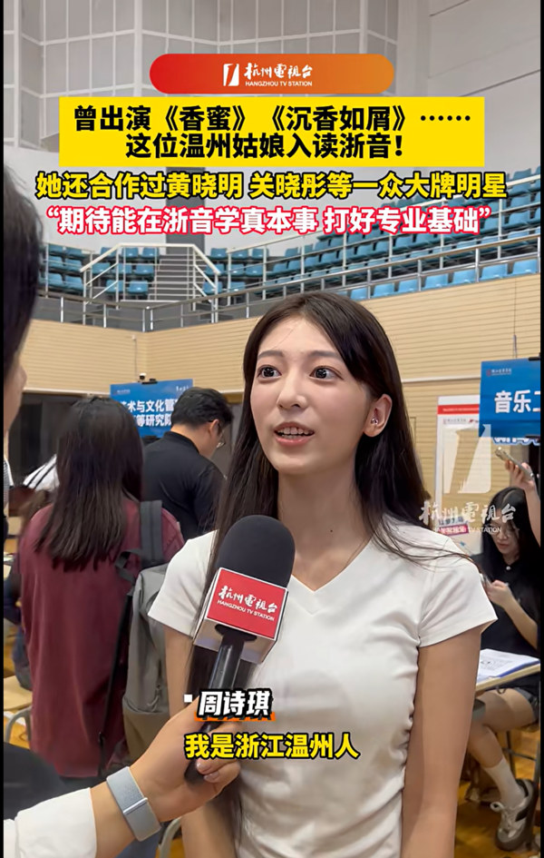 杭州综合频道:曾出演《#香蜜沉沉烬如霜》《#沉香如屑》......这位#温州 姑娘入读浙音!她还合作过#黄晓明、#关晓彤 等一众大牌明星!“期待能在浙音学真本事,打好专业基础”
