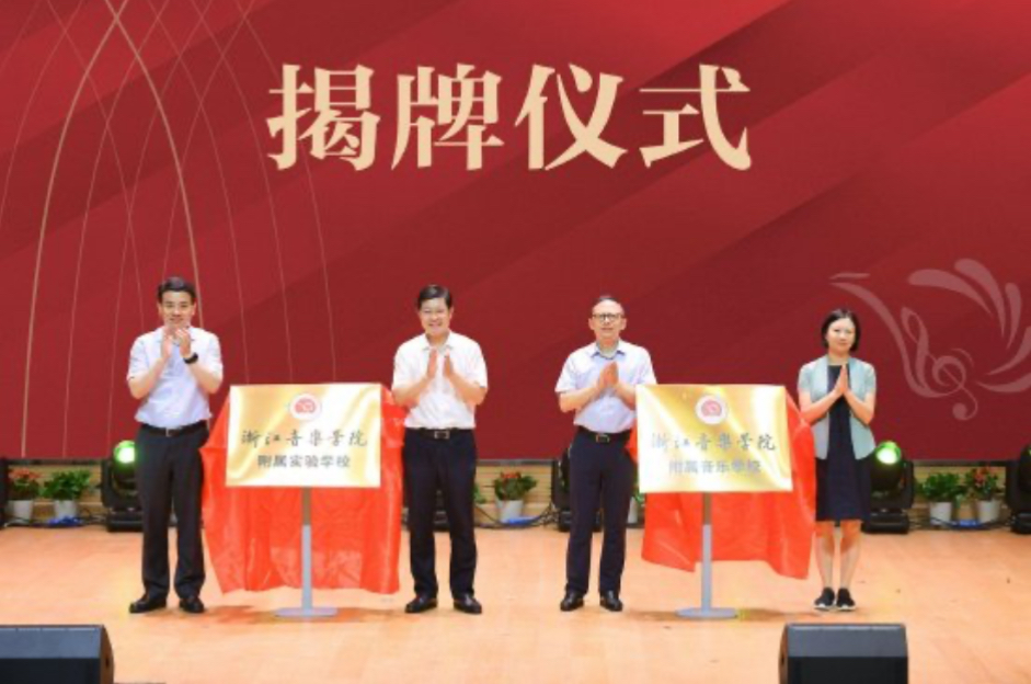 据悉,浙江音乐学院党委书记干武东、西湖区区委书记董毓民共同为浙江音乐学院附属音乐学校揭牌。浙江音乐学院院长王瑞,西湖区区委副书记、区长周扬为浙江音乐学院附属实验学校揭牌。