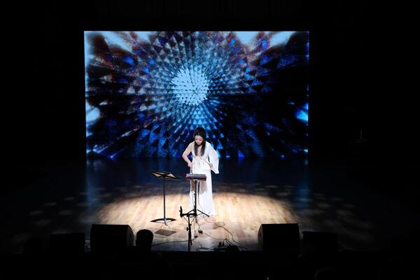 第四届中国-中东欧国家音乐舞蹈季开幕式现场,浙江音乐学院师生演绎交互式电子音乐作品《月音》,这是以嫦娥四号月球光谱数据为创作基础,融合数字打击乐器、多声道计算机音乐系统与实时交互影像的新作品,给观众带来了全新体验。
