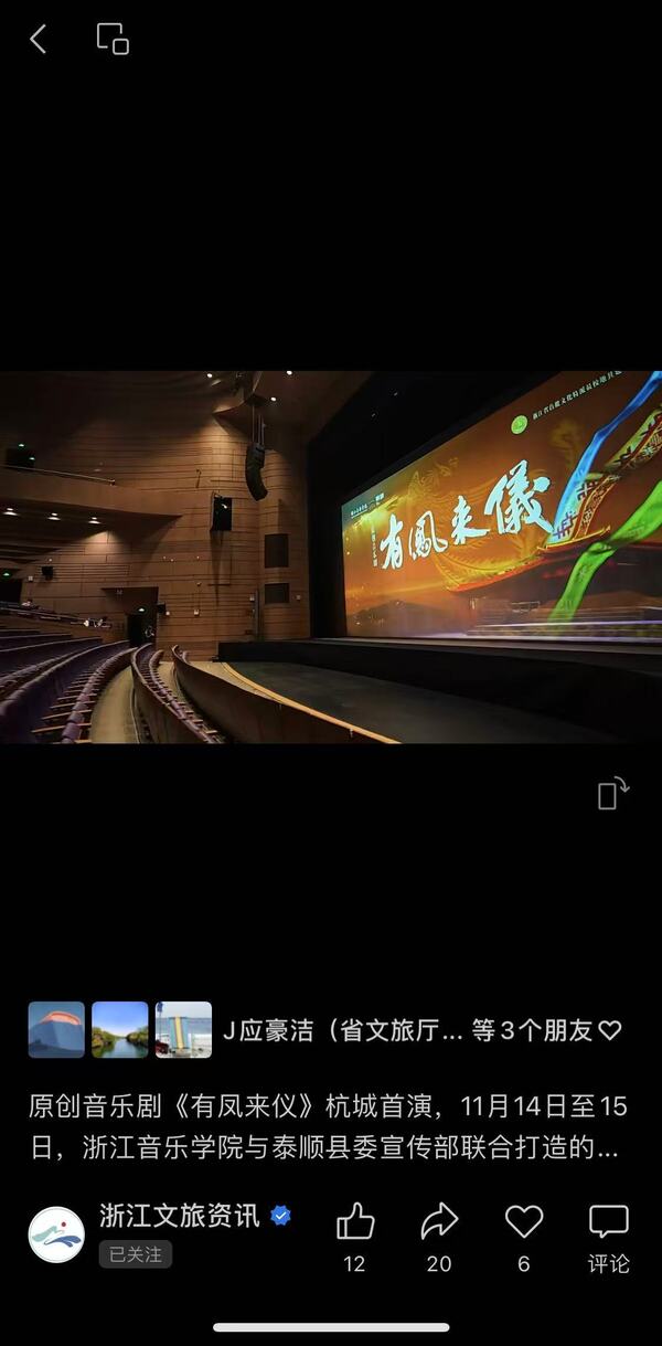 浙江文旅资讯:原创音乐剧《有凤来仪》杭城首演
