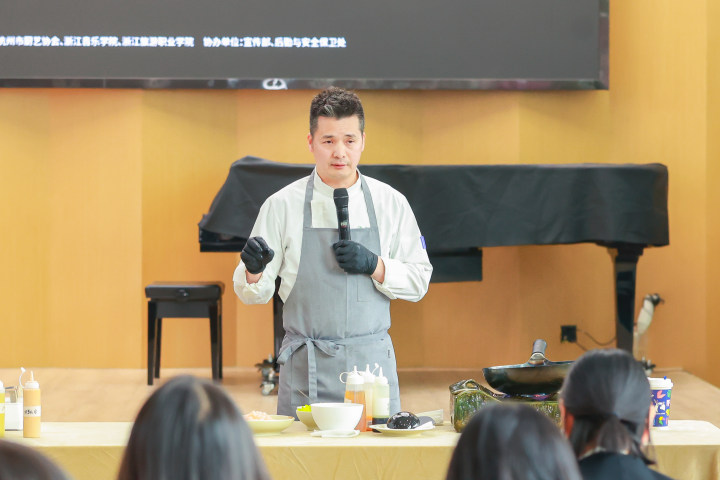 12月5日,一场名为“品杭州味道,傅匠心技艺” 的美学盛宴在浙江音乐学院举行。 作为“杭州味道大讲堂”系列活动之一,本次活动由杭州市厨艺协会联合浙江音乐学院和浙江旅游职业学院共同承办,主讲人是杭州唯一的米其林二星餐厅——如院餐厅的创始人兼主厨傅月良,杭州市厨艺协会会长徐迅担任主持。