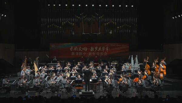 12月28日晚,浙江音乐学院附属音乐学校“乐韵交响,新年共华章”新年音乐会在浙音音乐厅举行。演出由浙江音乐学院附属音乐学校与浙音乐典文化联合主办,汇聚了140名师生参与演出。值得一提的是,浙江音乐学院附属音乐学校交响乐团和国乐团首次同台亮相,这两支乐团均为省内编制最完整、专业水准最高的青少年乐团。演出中,西方交响乐与中国民族管弦乐交相辉映,经典作品与当代原创作品同台演绎,充分展现了附中师生的艺术风采与专业水准。