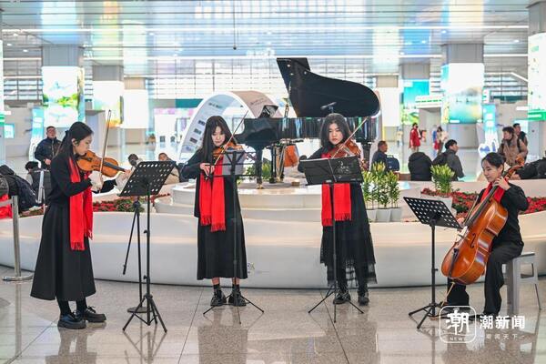 12月31日,杭州西站候车大厅内,一场新年音乐快闪精彩上演。浙江音乐学院钢琴系与管弦系的师生们,以悠扬的琴声与动人的旋律,为匆匆往来的旅客送上了一份温暖的新年祝福。