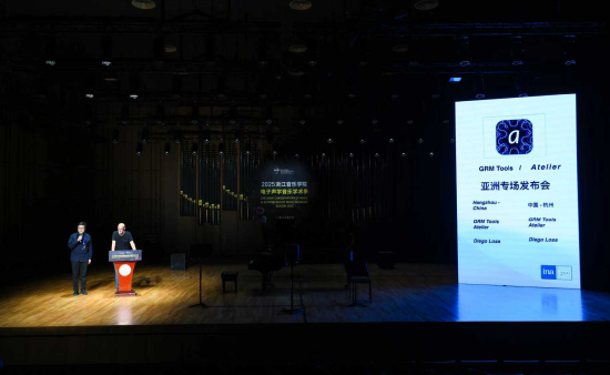 值得一提的是,开幕式现场,法国INA-GRM国家视听研究院迭戈·洛萨教授正式发布“GRM Tools Atelier”软件。这款新产品的最大亮点在于其高度的集成化与模块化:它将以往需要多个插件串联或并联才能实现的功能,全部整合进一个统一的插件界面中,极大地提升了创作的自由度与效率。软件还将多种空间化工具深度整合,使用户无需再手动指定声音的物理音箱方位,即可在插件内直接进行直观的声场设计和空间操控。这一突破标志着声音创作工具在空间维度上的一次重大飞跃。