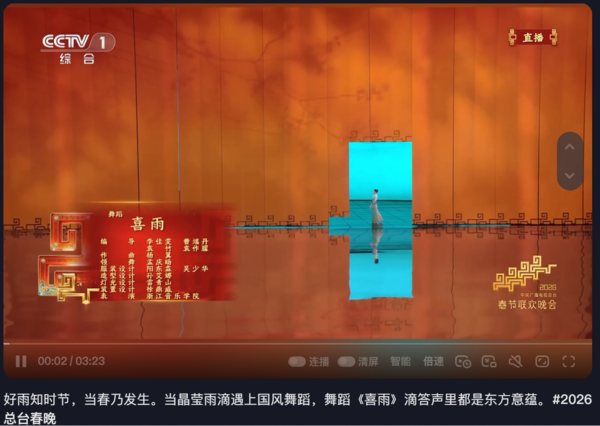 新闻联播:好雨知时节,当春乃发生。当晶莹雨滴遇上国风舞蹈,舞蹈《喜雨》滴答声里都是东方意蕴。