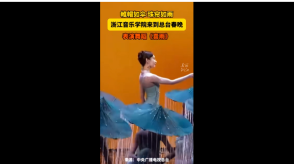 美丽浙江:好唯美!帷帽如伞,珠帘如雨。浙江音乐学院来到#总台春晚 表演舞蹈《喜雨》