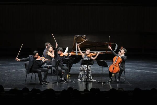 相比之下,舒曼《降E大调钢琴五重奏》则转向更为明晰的古典结构与浪漫表达之间的平衡。钢琴与弦乐之间的关系处理尤为关键:既不能形成“独奏—伴奏”的传统格局,也不能完全消解层次。现场演绎中,钢琴声部在推进结构的同时,保持了与弦乐的呼吸一致,使得整体音响呈现出一种“协同推进”的状态。