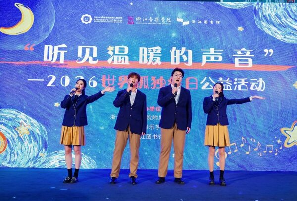活动最终环节,专为孤独症儿童打造的原创歌曲《星光》正式发布并首唱。该作品是浙音联合浙大儿院、国内外艺术家推出的“听见温暖的声音”疗愈音乐创作计划的项目成果,以“星光”“翅膀”等意象勾勒陪伴与希望。领衔演唱的学生之一,是曾亮相2026年央视春晚、“中国唱将”全国十强、浙音音教学院学子郑心烨。她感慨道:“歌声不仅是艺术的表达,更是连接心灵、传递善意的桥梁。希望能用音乐让更多人理解并关爱‘星星的孩子’。”
