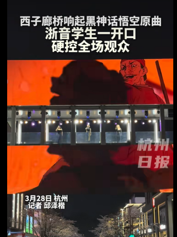 杭州日报:西子廊桥响起黑神话悟空原曲,浙音学生一开口,硬控全场观众