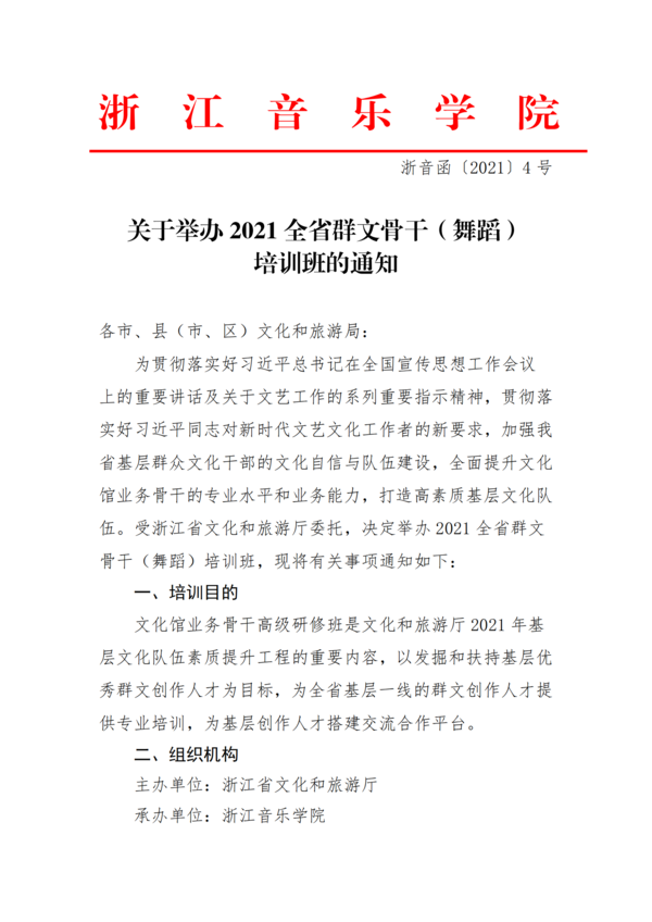 关于举办2021全省群文骨干(舞蹈)培训班的通知