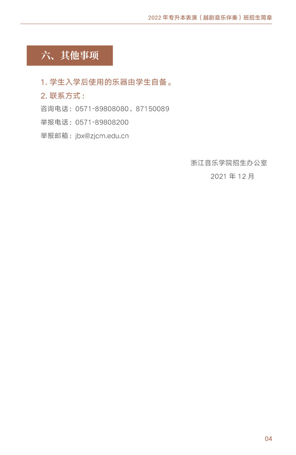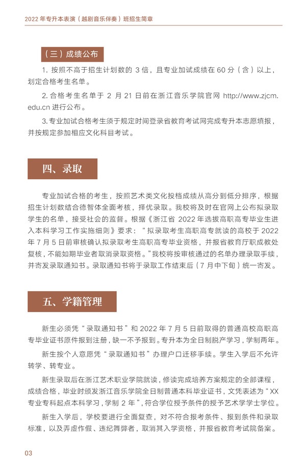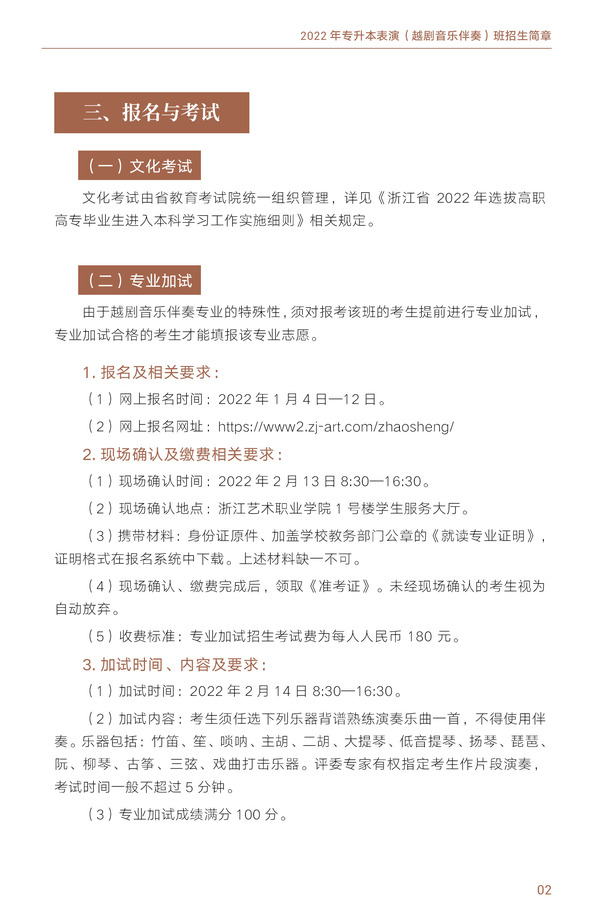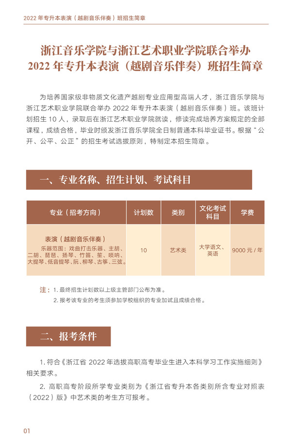 浙江音乐学院与浙江艺术职业学院联合举办2022年专升本表演(越剧音乐伴奏)班招生简章