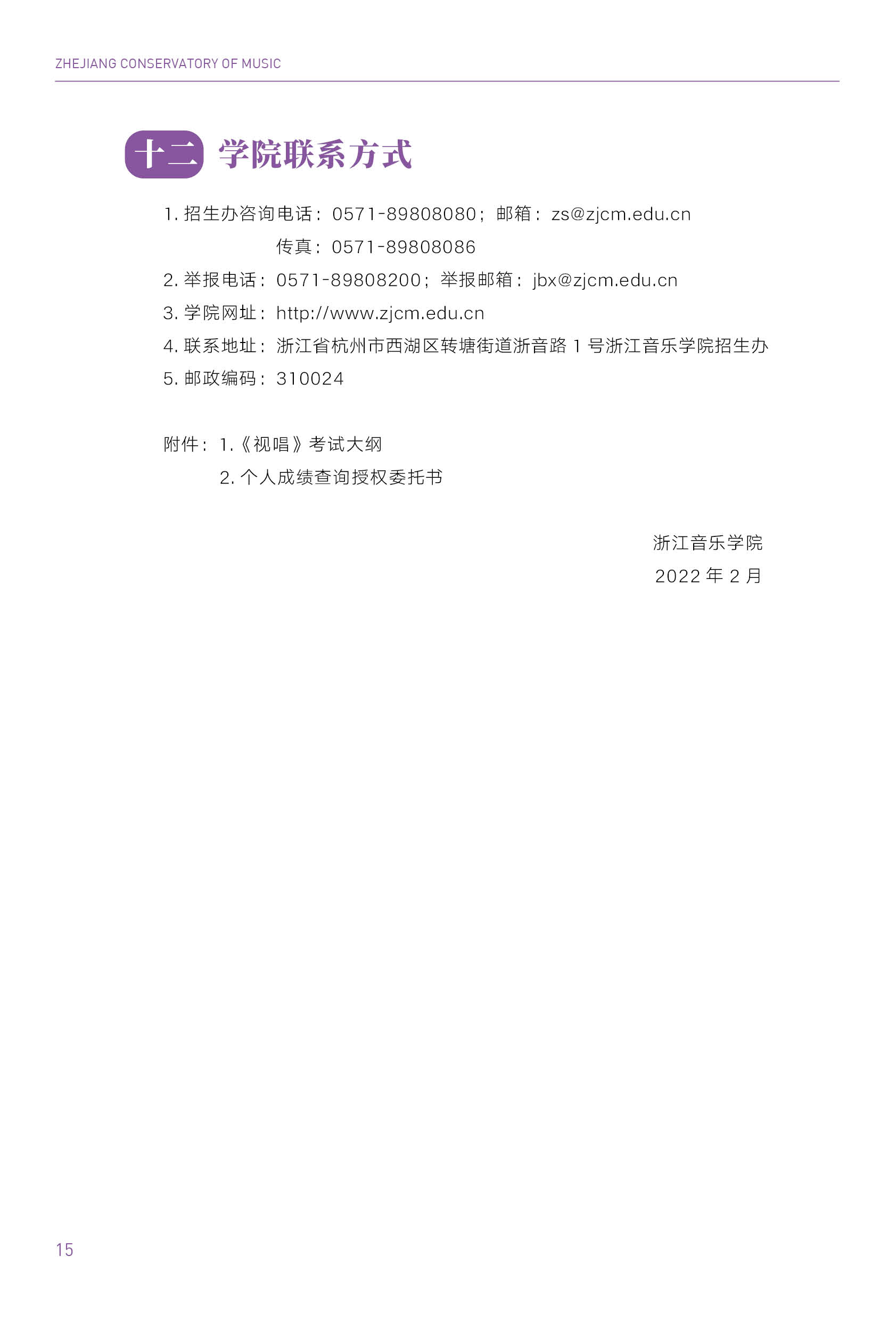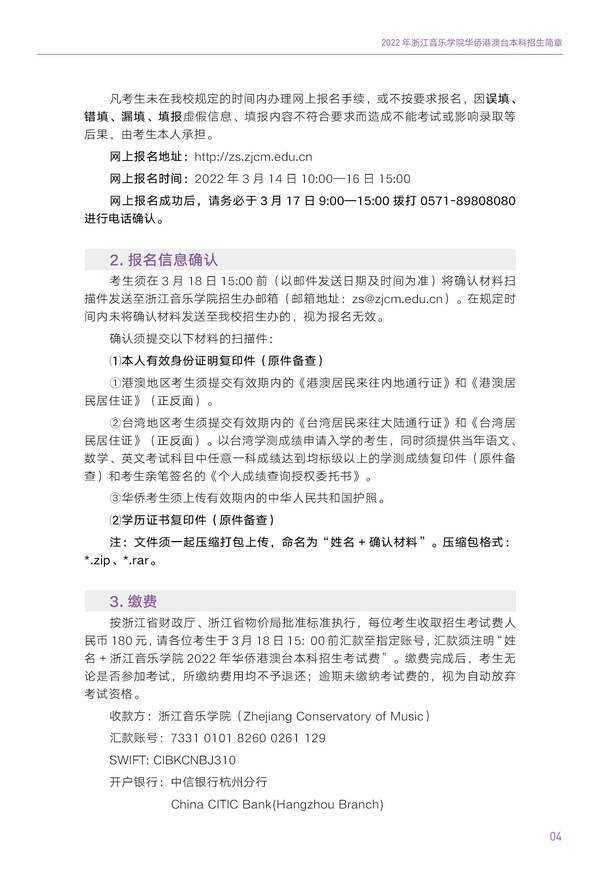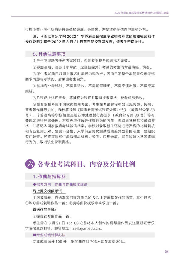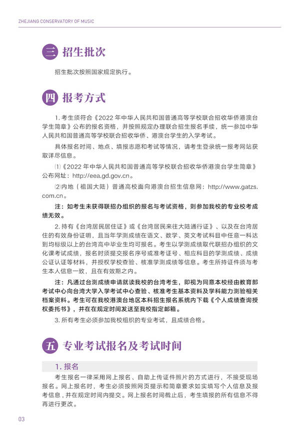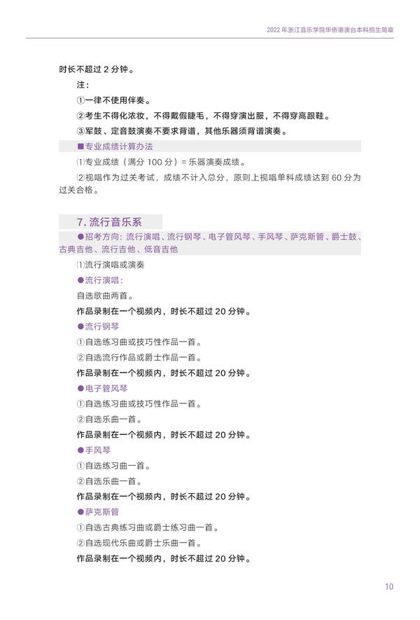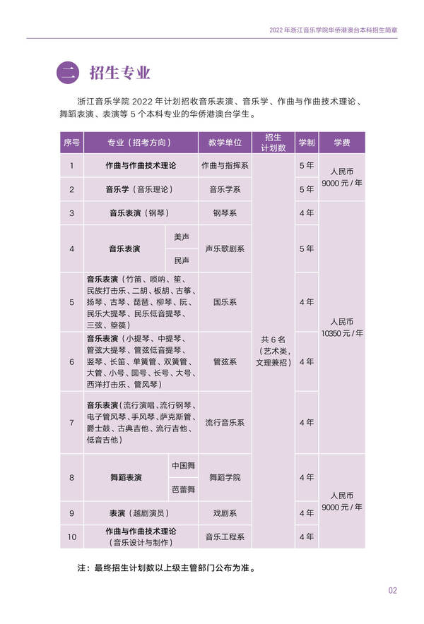 2022浙江音乐学院华侨港澳台本科招生简章