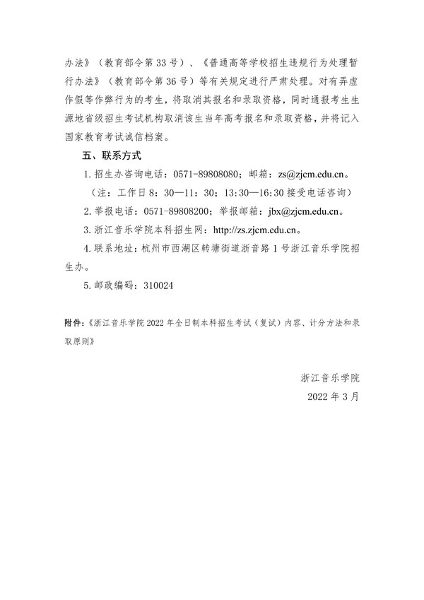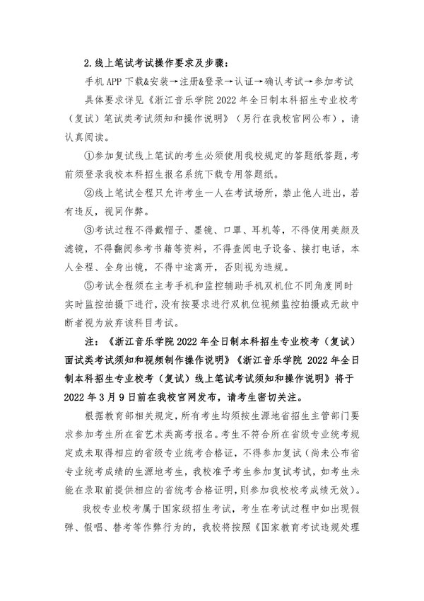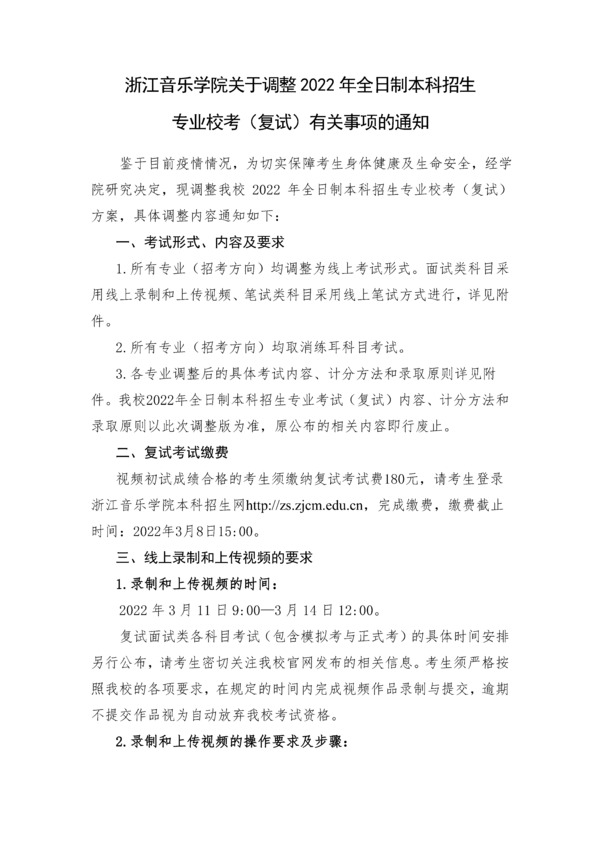 浙江音乐学院关于调整2022年全日制本科招生专业校考(复试)有关事项的通知