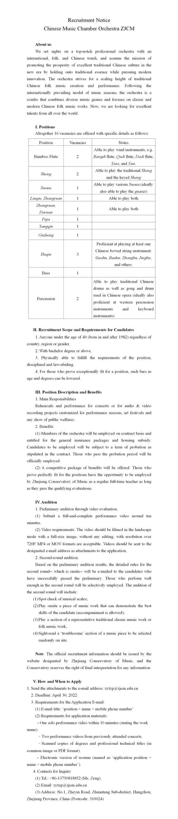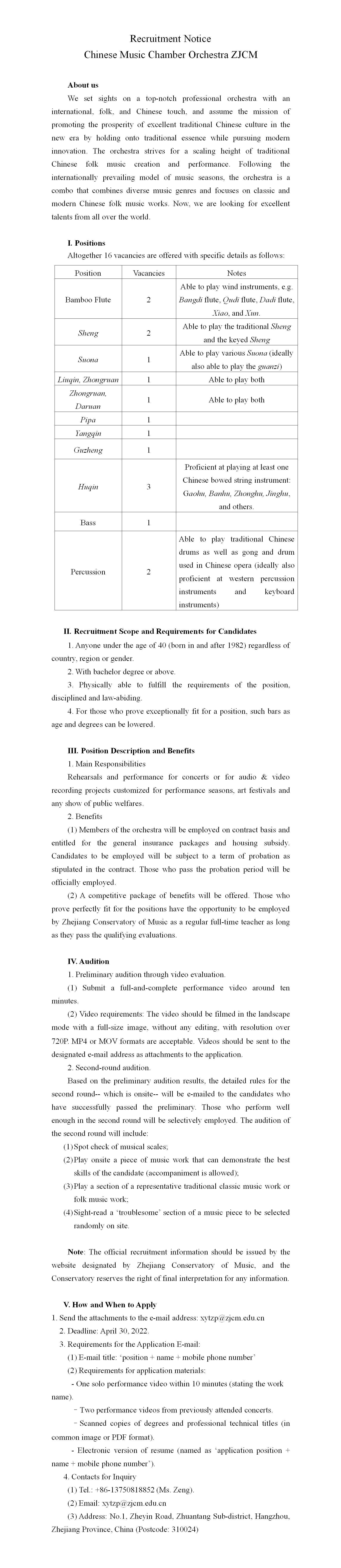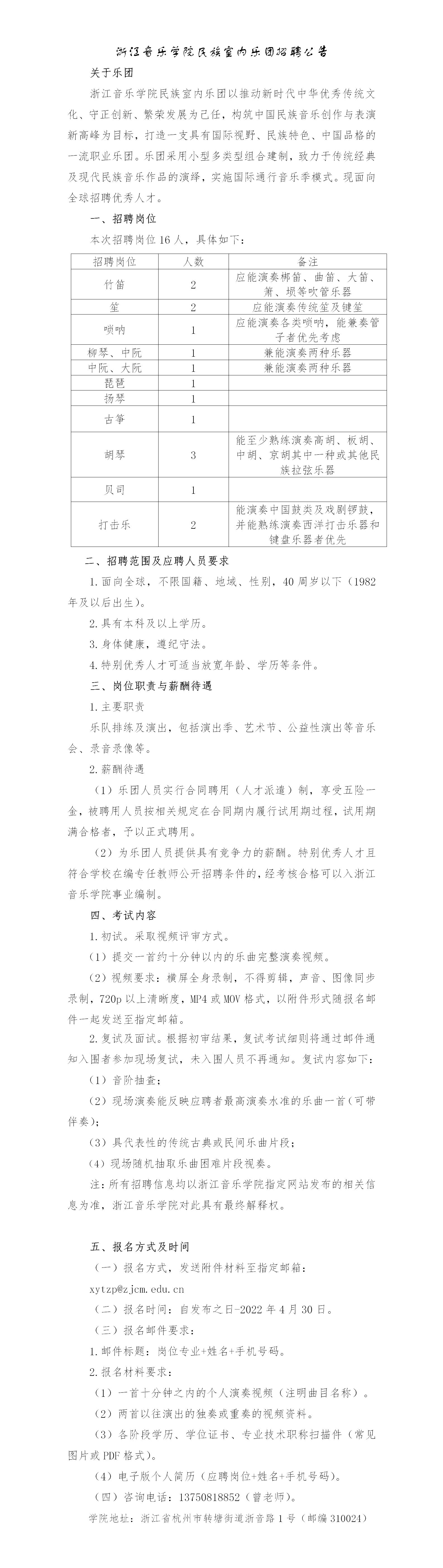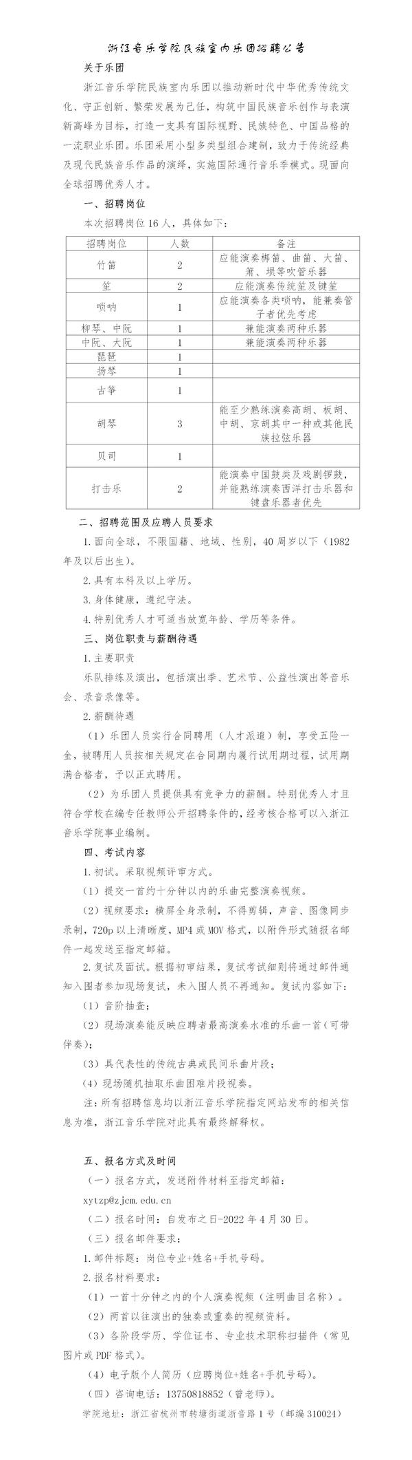浙江音乐学院民族室内乐团招聘公告