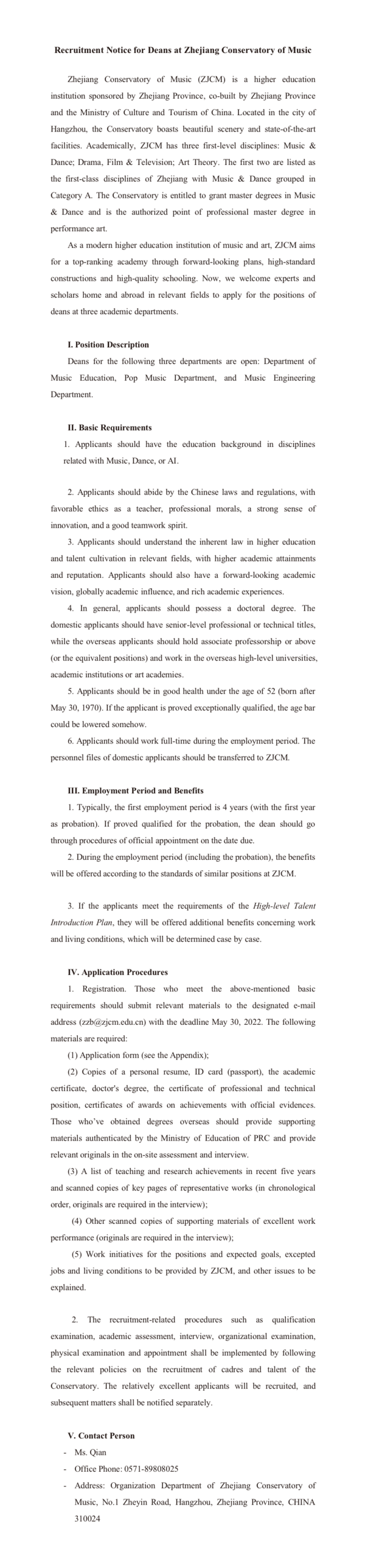 Appendix: Application Form for Deans at Zhejiang Conservatory of Music.doc