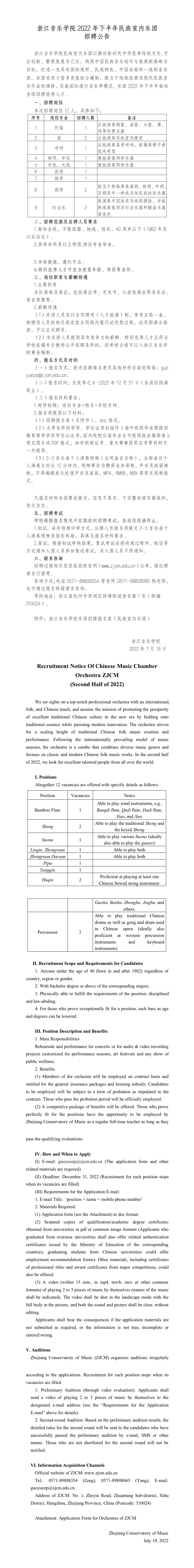浙江音乐学院2022年下半年民族室内乐团招聘公告