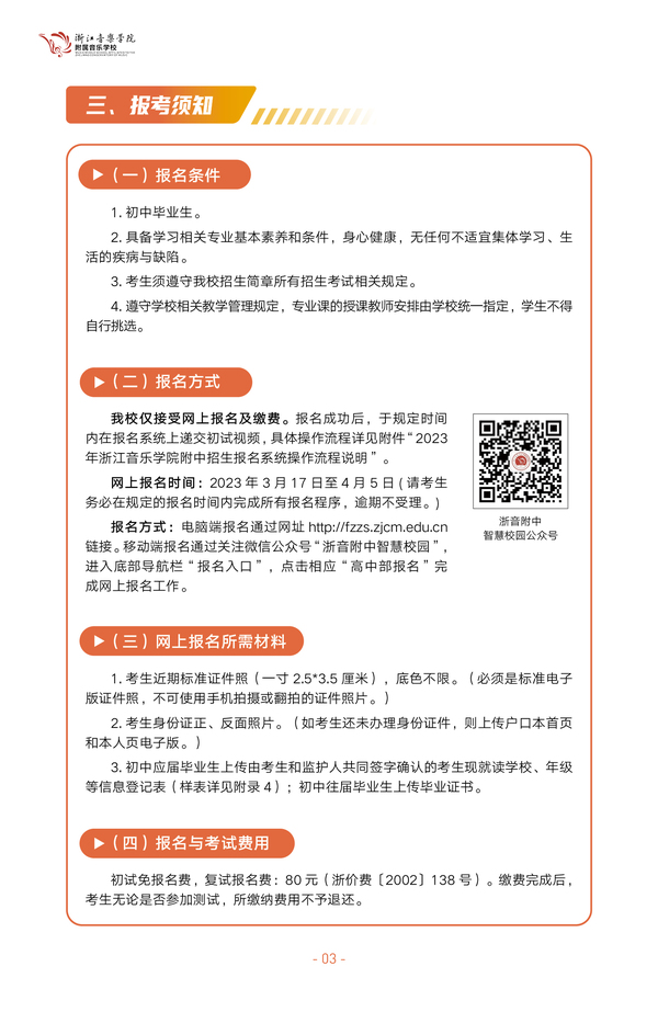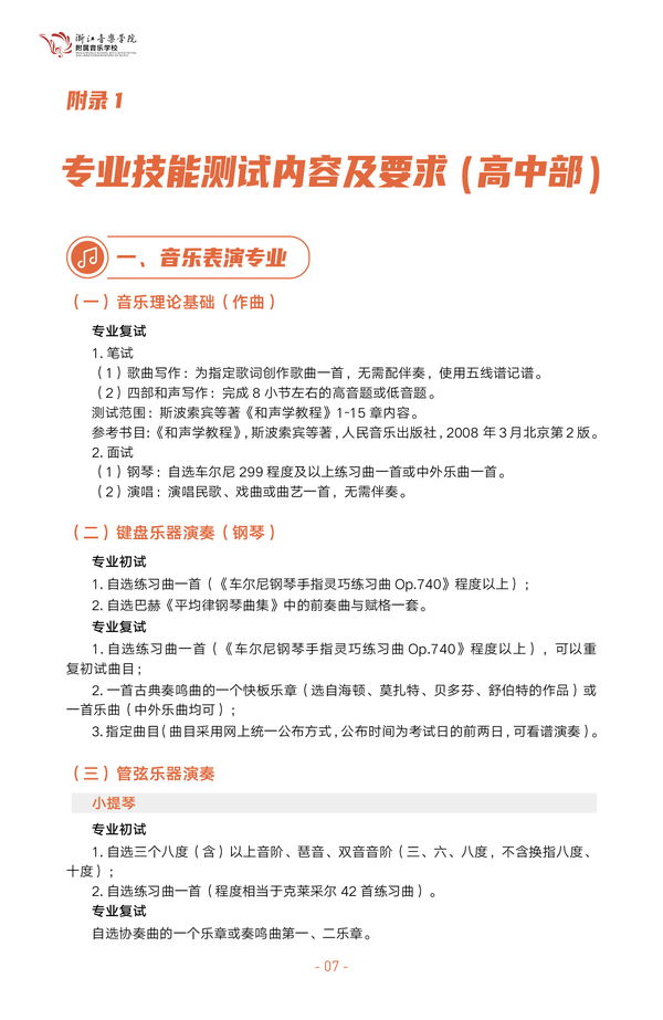 2023浙江音乐学院附属音乐学校高中部招生简章