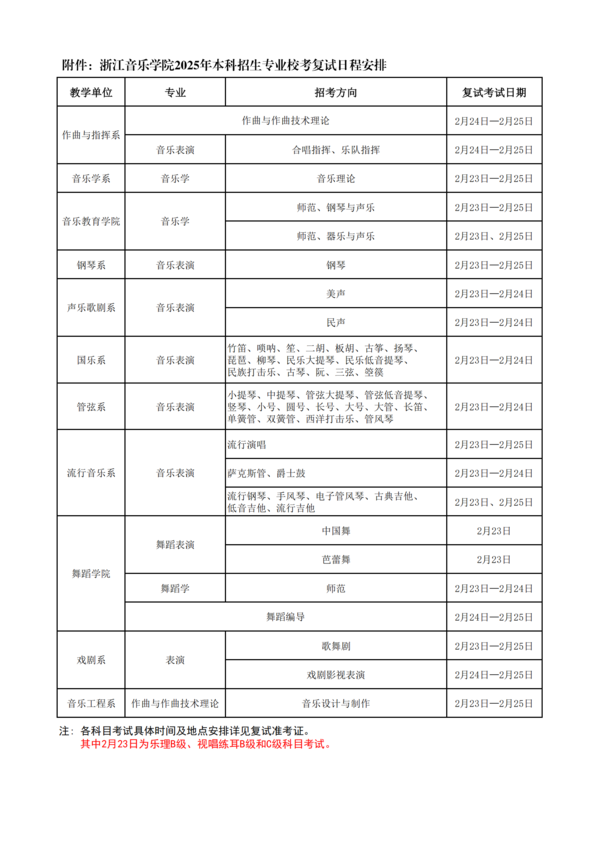 ③《练耳B》《乐理B》(其中音乐设计与制作专业方向只参加练耳科目)为同一场考试,考试开始时间为2月23日下午15:00,练耳B考试在前,迟到者两门科目均取消考试资格;