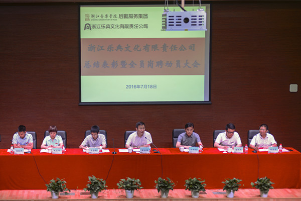 7月18日上午,浙江乐典文化有限责任公司(以下简称乐典公司)在学术报告厅召开工作总结表彰暨全员岗位聘任动员大会。学院党委委员、副院长张鸿雁,人事处、财务处、资产与后勤管理处等部门负责人,乐典公司总经理陈琛杰、党总支副书记陈宝清、副总经理董杭军等公司领导及全体员工参加会议。会议由陈宝清主持。