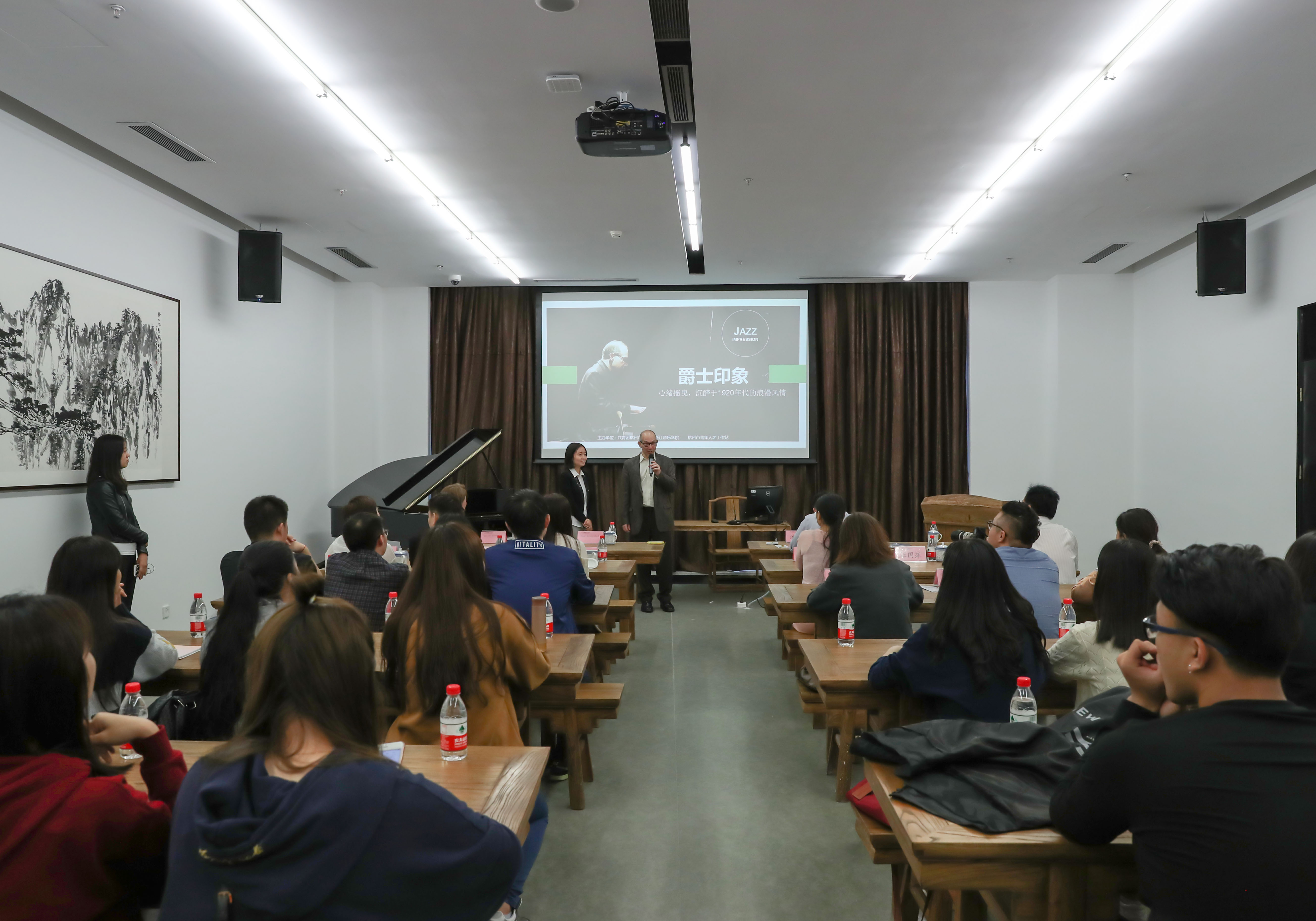 为加强中外文化艺术交流,10月25日下午,美国茱莉亚音乐学院教授Ted Rosenthal与夫人Lesley Rosenthal来我院举办爵士音乐沙龙,为我院同学们带来一场精彩纷呈的大师课。该活动由共青团杭州市委、浙江音乐学院、杭州市青年人才工作站主办,我院党委副书记、副院长张建国,共青团杭州市委副书记汤筠,我院党委宣传部负责人和师生代表参加。