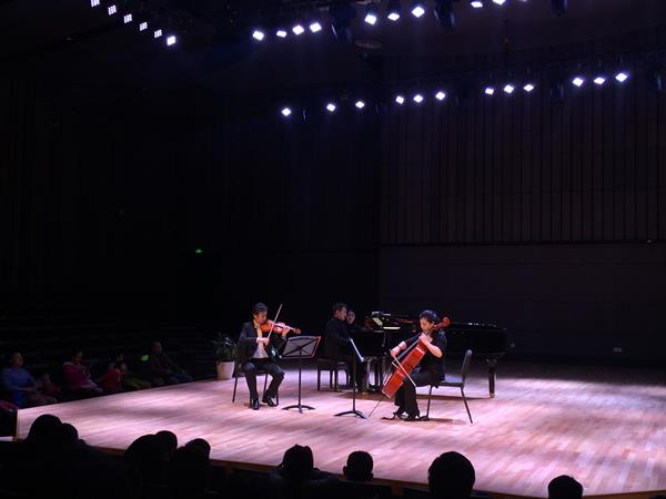 音乐会上,音乐家们演奏了两首室内乐经典作品——门德尔松的《D小调第一钢琴弦乐三重奏》作品49号,以及肖斯塔科维奇的《E小调第二钢琴弦乐三重奏》作品67号。小提琴细腻又具穿透力的音色与大提琴浑厚饱满的声音交融,与钢琴形成了特有的共鸣。在场听众屏息聆听,与音乐家们一起沉浸在美妙的音乐中。演出结束,观众以长时间热烈的掌声向艺术家致敬。