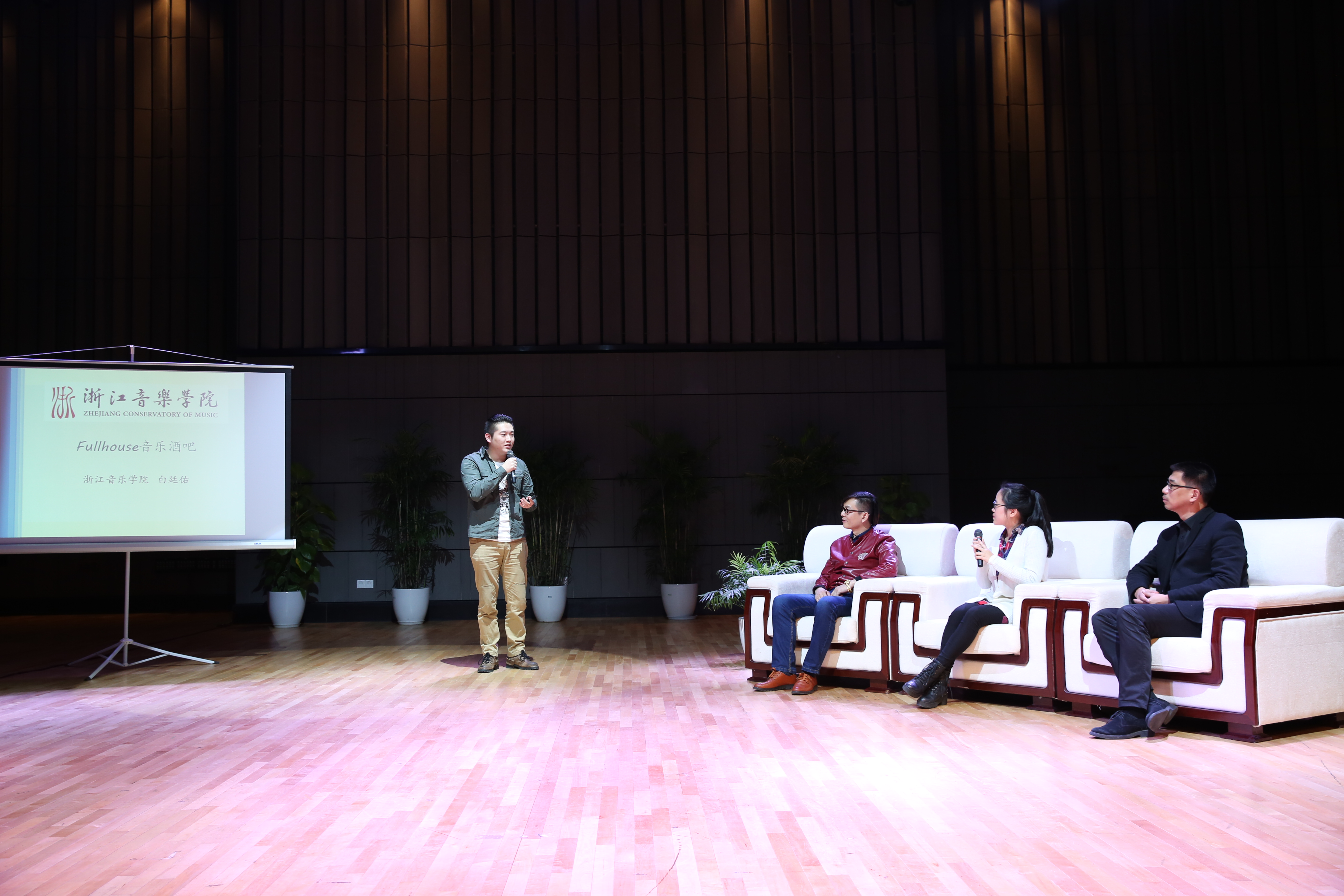 我院“音乐伴随成长——艺梵文化”、“帕特·一月艺术实践中心”、“艺雅音乐制作有限公司”、“音乐易学课堂”、“浙音里音乐主题咖啡馆”、“Fullhouse音乐酒吧”等6个学生创业团队进行了各自创业项目展示,他们由来自作曲与指挥系、音乐教育系、声歌系、国乐系、管弦系、流行音乐系的本科生及研究生组成,创业项目涉及教育、培训、餐饮、娱乐等行业。经过激烈竞争,最终4个创业团队与导师成功结对。