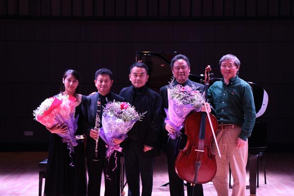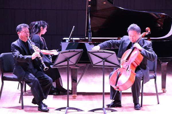 音乐会上,白铁与特邀大提琴家郭永生教授,以及管弦系钢琴艺术指导齐笑怡老师共同演奏了由Carl Fruhling为单簧管、大提琴和钢琴而作的《a小调三重奏》和贝多芬的《三重奏》等作品。单簧管柔和的音色和大提琴美妙的声音相互交融,与钢琴一道奏出温婉而不失力度的音乐,让听众得以在喧嚣的都市中享受到心灵的宁静致远。