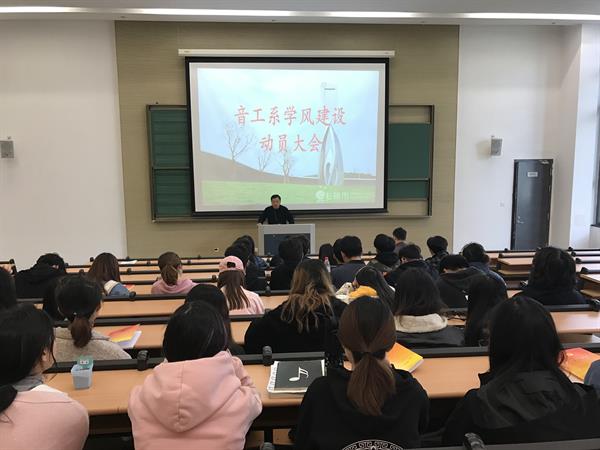 为进一步深入贯彻落实全国全省高校思想政治工作精神,加强学生管理,狠抓学风建设,巩固教学成果。近日,音乐工程系在艺术工程楼A110召开了学风建设动员大会,音工系副主任黄晓东、副书记胡丰华,辅导员、班主任及全体学生参加会议,会议由胡丰华主持。