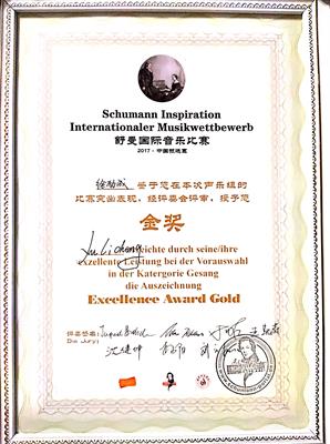 声乐歌剧系教师在2017“舒曼国际音乐大赛中国区选拔赛”中荣获金奖