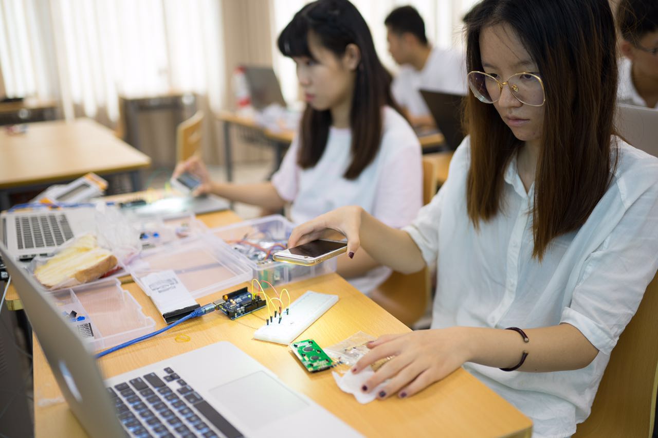 首次“密集工坊”课程以Processing编程语言为核心,以具体的舞台作品、装置作品中的声音、视频以及人机交互技术原理为突破口,打破学生对“编程”特别是代码式编程的恐惧,讲授各种交互作品的媒介类型、信号的获取、数字化、交互原理、信号控制手段等,使学生初步掌握Processing编程语言、Arduino及部分传感器的应用技术、声音可视化处理技术等。课程注重与实际应用的结合,还安排学生去商业剧场现场观摩,了解艺术市场第一线的艺术与科技应用情况,弥补了新兴知识、技术、软硬件工具不能及时安排进培养方案及课程教学体系的欠缺。