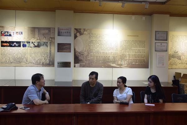 西安鼓乐是千百年来流传于西安及其周边地区的传统民间大型鼓吹乐,是国内迄今为止发现并保存最完整的大型民间乐种之一,是古代音乐的“活化石”。西安具有众多的鼓乐社,如都城隍庙鼓乐社、何家营鼓乐社、大吉昌乐社等六个乐社。社会实践期间,音乐学系师生前往了西安著名景点——大唐芙蓉园,观看了东仓鼓乐社的鼓乐表演,前往都城隍庙、何家营村寻找鼓乐的影子,还拜访了西安鼓乐的专家——西安音乐学院程天健教授。程教授热情耐心地介绍西安鼓乐的“哼哈”韵唱、艺术特色以及他对西安鼓乐的研究历程,还为大家介绍了早在1952年李石根先生就与杨荫浏、樊昭民、何钧等专家对西安鼓乐进行初步调查,之后便长期投入到西安鼓乐的研究中去的故事。程教授说,他们西安鼓乐研究所开展了“六个乐社进行60年重访”工作,目前他们已经走访了四个乐社,其中一个乐社还没来得及采访,老艺人就突发心脏病去世了。此次重访工作时间紧迫,对非遗的保护正迫在眉睫。听完程教授的话后,师生们更加全面地了解了西安鼓乐,对前辈的钻研精神以及团队精神敬佩不已,大家纷纷表示,要尽快开展浙江省传统音乐的传承和保护,作为音乐学院的师生,责无旁贷。
