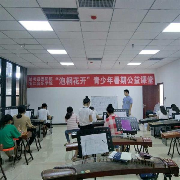 7月11日起,实践团师生携手堌阳镇政府联袂打造的“泡桐花开”青少年暑期公益课堂正式开课。本次公益活动旨在结合浙音学生的专业优势,为当地青少年普及音乐知识,提高艺术素养。