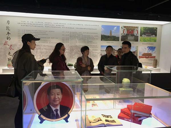 支部一行先去丽水职业技术学院参观“中国特色社会主义理论主题展馆”。展馆内容丰富,对习近平总书记的成长、工作历程、治国理政的思想、新时代军队建设、“一带一路”的战略意义,以及总书记对大学生、对教育、对教师的寄语等都有详尽的介绍。大家参观之后感悟很深,对习近平新时代中国特色社会主义思想有了深刻理解。