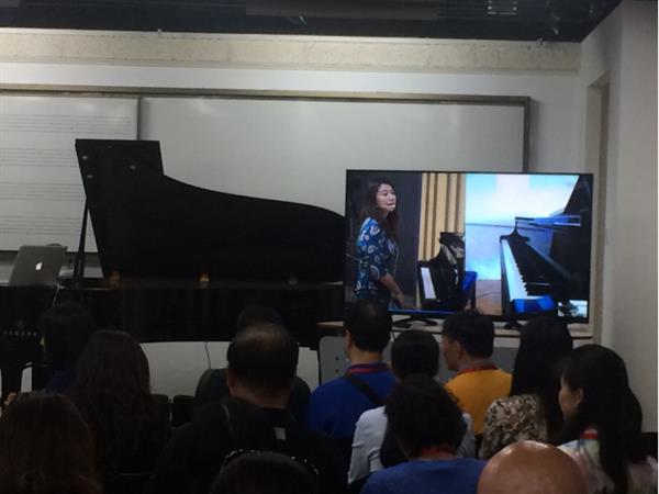 会上,进行了北京、杭州、绵阳三地钢琴教学1对2大师班的音乐教学展示。我院钢琴系副主任朱楣在学院远程钢琴教室,对千里之外的中央音乐学院钢琴系研究生进行了专业授课指导,同时绵阳师范学院师生作为观摩院校,在线实时参加大师班,并作了互动交流。此次活动全程高质量音视频流的稳定传输,智能钢琴的高保真还原演奏和高清的视频画面,极大提升了音乐远程教学效果和质量,同时为音乐教育拓宽了地域和时间的边界
