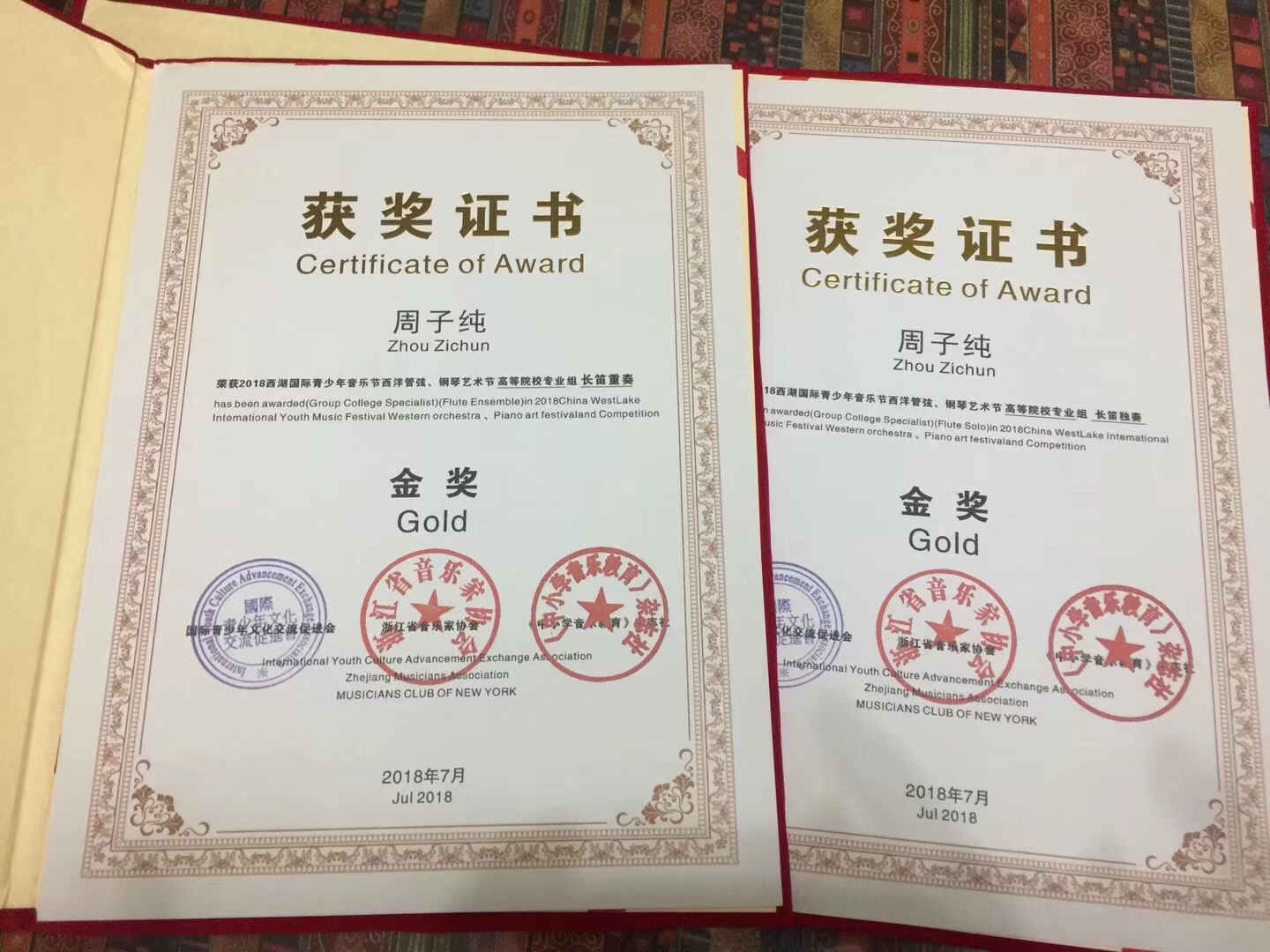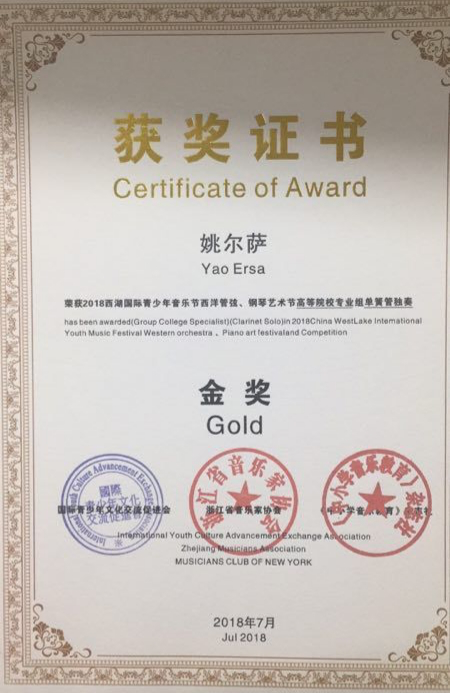近日,2018西湖国际青少年音乐节圆满落幕。音乐节上,由何靖老师指导的管弦系2015级周子纯同学、2016级沈昕怡同学在“西湖国际青少年音乐节”比赛中双双荣获长笛独奏和重奏两项金奖,由邸晓嫣老师指导的管弦系2018级姚尔萨同学荣获单簧管独奏金奖。何靖、邸晓嫣等两位老师荣获优秀指导教师。
